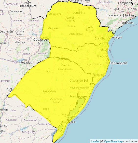 Segundo aviso: tempestade de grau de severidade “Perigo Potencial”