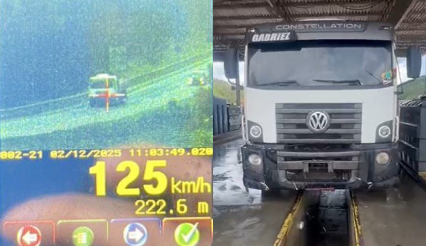 Na tarde de terça (2), a PRF, durante uma operação de segurança viária, com o uso de radar portátil, flagrou um caminhoneiro a 125 km/h, na BR-116, em Campina Grande do Sul (PR), onde o limite é de 90 km/h.