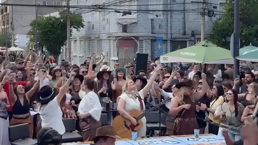 Desde o início da tarde, a quadra entre a Alameda Augusto Stellfeld e a Rua Saldanha Marinho se transformou em palco para o “modão raiz”, reunindo fãs do sertanejo tradicional e curiosos que passavam pelo local. O público ocupou a via e acompanhou de perto as performances, que celebraram a força feminina no gênero e a conexão do sertanejo com a cultura popular.