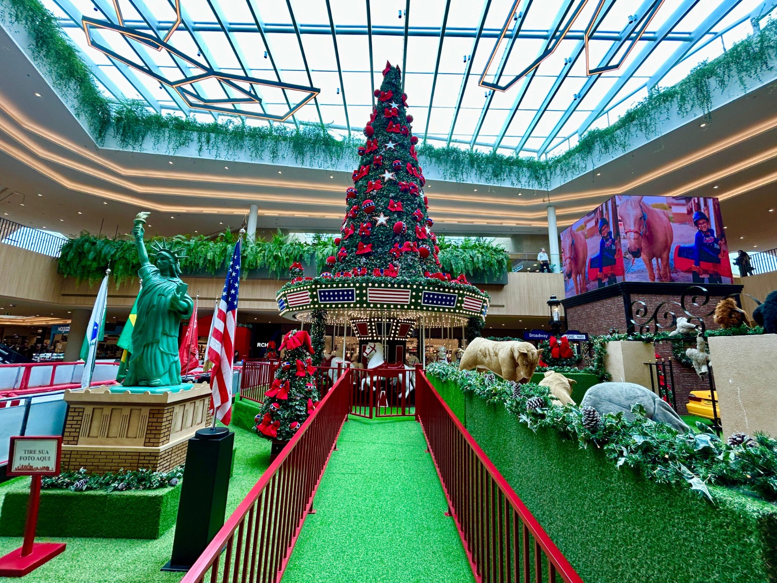A decoração traz ainda diferentes espaços instagramáveis, como a Estátua da Liberdade, uma guirlanda gigante de 3,5 metros com a Big Apple e uma árvore de Natal decorada de 10 metros, proporcionando momentos de pura magia e fotos inesquecíveis.
