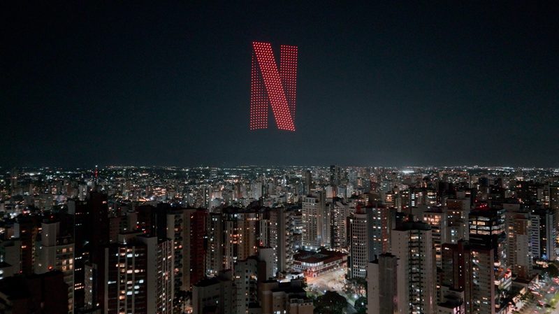 A ação faz parte de uma campanha publicitária para a terceira temporada da série japonesa de drama Alice in Borderland, da empresa de streaming norte-americana Netflix, que estreia nesta quinta-feira (25/9). O show de drones foi negociado e autorizado pela Curitiba Film Commission, órgão municipal de incentivo e apoio a produções cinematográficas, televisivas ou publicitárias na cidade.