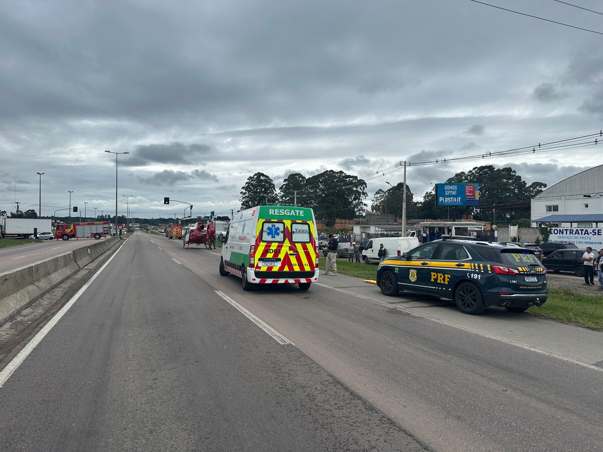 Acidente grave na Grande Curitiba mobiliza helicóptero para resgatar motociclista ferido