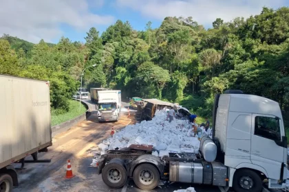 Acidente com caminhão de peixe causa congestionamento de 25 km na BR-116