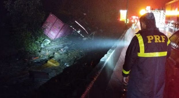 A colisão aconteceu por volta das 21h40, em Guaratuba, no trecho da rodovia que liga o Paraná a Santa Catarina. De acordo com informações da Polícia Rodoviária Federal (PRF), a carreta perdeu os freios e atingiu a traseira da van, que acabou sendo arrastada para fora da pista e ficou sob o container tombado. A van transportava um total de 10 ocupantes, e apenas o adolescente conseguiu sobreviver, sendo rapidamente resgatado e encaminhado ao Hospital São José, em Joinville (SC). O motorista do caminhão também foi levado para a mesma unidade de saúde, onde ambos permanecem em observação, com estado de saúde estável, conforme boletim divulgado nesta manhã de segunda-feira (21).