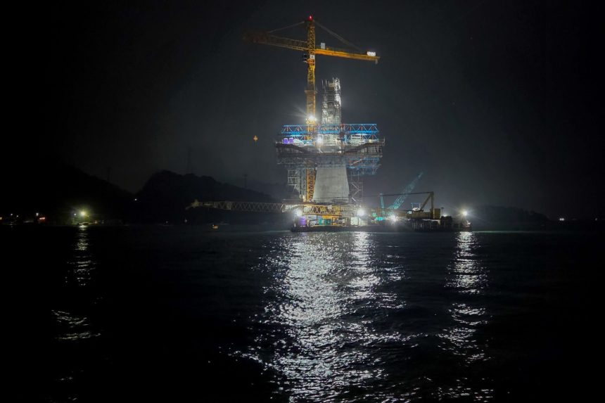 Há atividades realizadas no período noturno que são mais específicas, conforme o projeto toma forma. Nesse momento, por exemplo, os trabalhos estão na execução dos balanços sucessivos. “Durante a noite é feito todo o trabalho de armação das ferragens. Durante o dia tem muita movimentação de carga, de materiais sendo transportados. Então, além dos serviços específicos de perfuração e na parte estaiada, à noite é feito também esse trabalho de preparar tudo para que no dia seguinte a produtividade seja maior”, complementa.