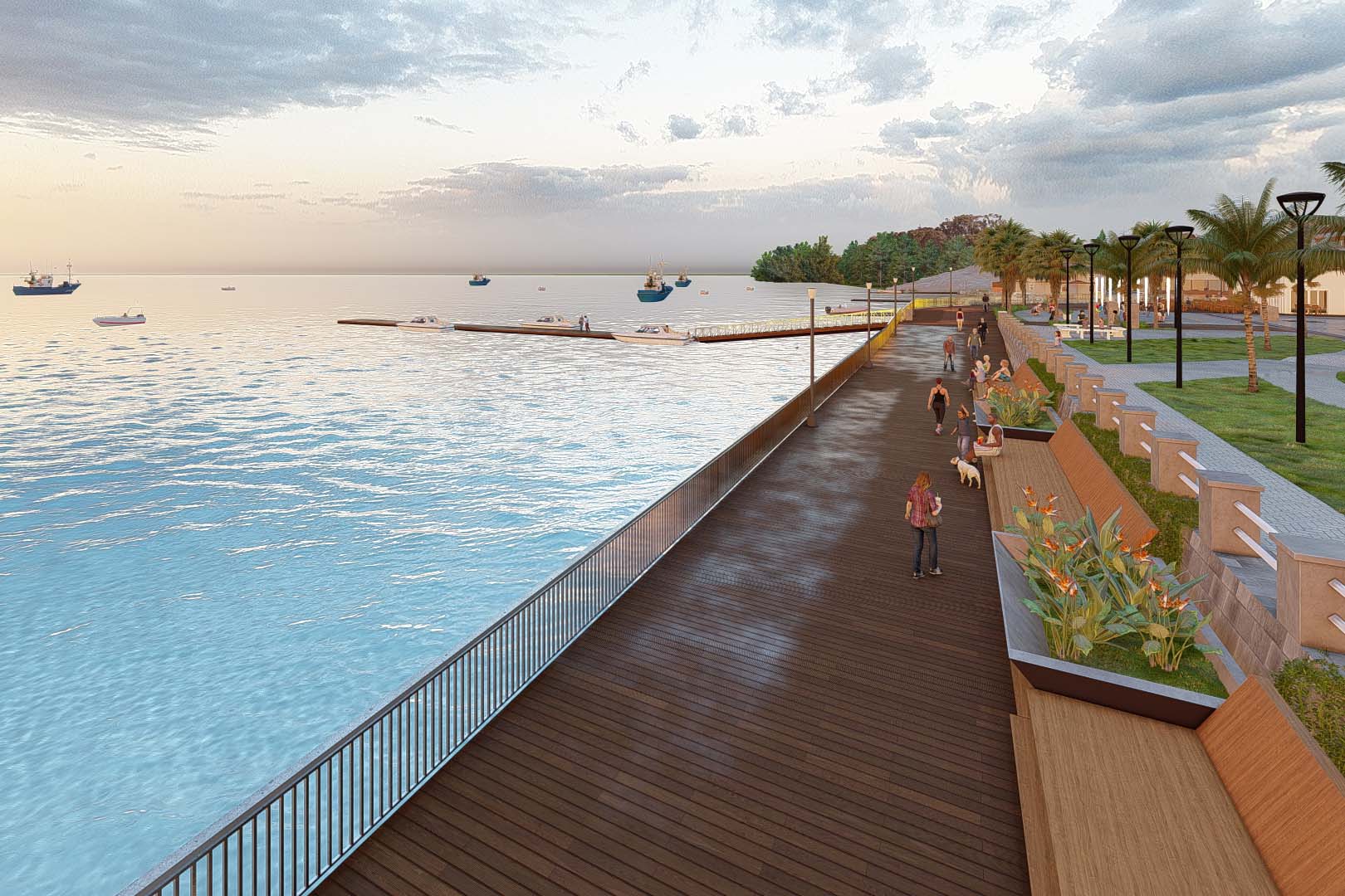 O projeto mais avançado é da Orla Histórica. Ele envolve a construção de um grande deck de madeira, reforma de trapiches, novo calçamento, paisagismo, iluminação, espaços de lazer e convivência e estacionamento, o que promete melhorar a experiência de moradores e turistas que frequentam a região.