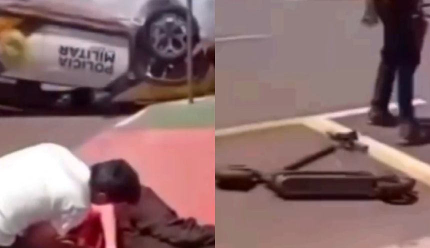 Viatura da polícia militar capota após colisão e atinge jovem em patinete no Paraná