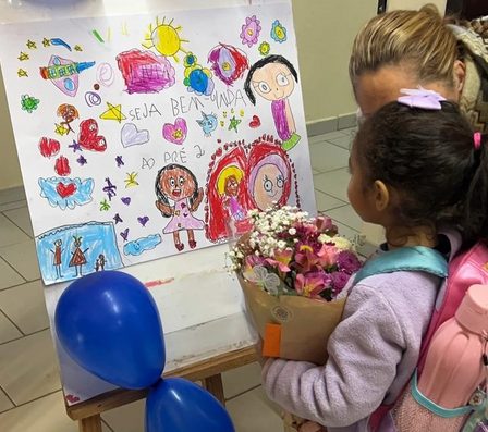 Era uma sexta-feira de manhã, quando Lívia voltou à sala de aula pela primeira vez desde sua internação, agora no Pré II. As suas professoras, Valéria Bernardes Borel e Gabrielly Matos, haviam mobilizado toda a turma, que preparou uma surpresa com balões coloridos e cartazes para comemorar sua volta.