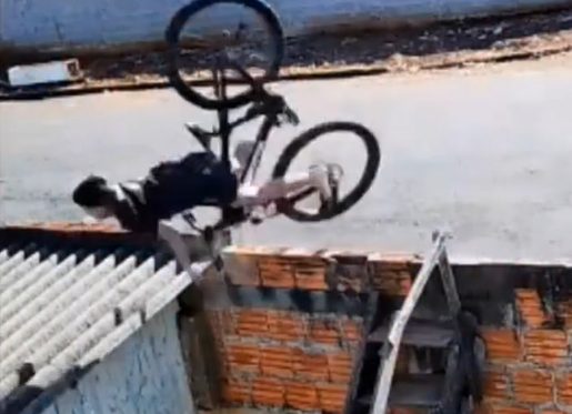 Nas imagens registradas pelo equipamento, é possível ver o garoto descendo a ladeira em alta velocidade. Em determinado momento, ele grita “Tá sem freio” antes de colidir com uma mureta e ser arremessado para cima do telhado de uma residência, que fica no mesmo nível da rua. Aparentemente, a bicicleta estava sem freios, mas não foi confirmado se essa foi a causa exata da perda de controle.