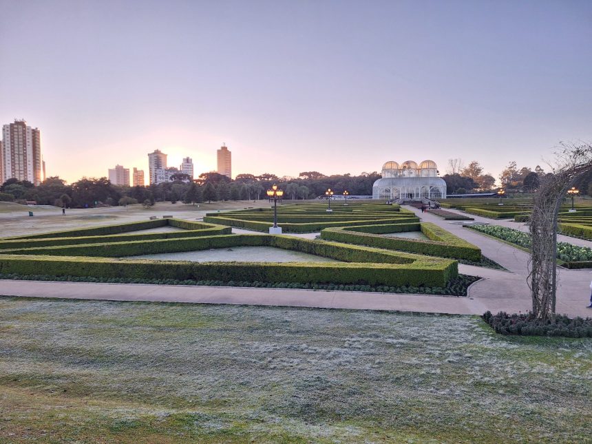 A manhã desta quarta-feira (30) começou gelada em Curitiba, com um cenário típico de inverno que encantou moradores e visitantes. A cidade amanheceu coberta por uma fina camada de gelo em diversos bairros, resultado da geada registrada durante a madrugada. O fenômeno natural deixou pontos turísticos como o Jardim Botânico, o Parque Tanguá e o Parque Barigui com os gramados esbranquiçados, criando paisagens dignas de cartão-postal.