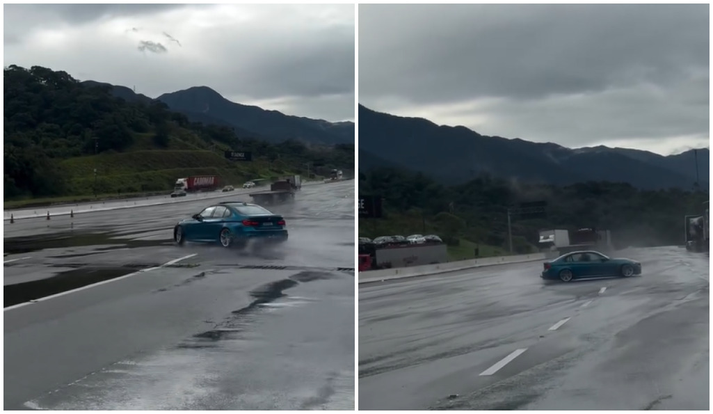 Um vídeo mostrando dois motoristas de BMWs realizando manobras perigosas na BR-101, em Garuva (SC) sentido Curitiba (PR), viralizou nas redes sociais nesta quarta-feira (5). As imagens, captadas pelas câmeras de videomonitoramento da concessionária Arteris Litoral Sul, mostram os veículos em alta velocidade, desviando do pedágio e derrapando na pista molhada, o que gerou grande repercussão online.