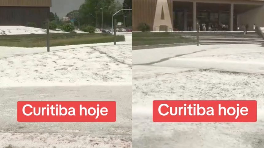Um vídeo impressionante viralizou nas redes sociais nesta quarta-feira (25), mostrando a região em frente ao Jockey Plaza Shopping, em Curitiba, completamente coberta por uma camada branca. A legenda afirma que a imagem foi registrada “hoje às 6h”, e o visual, que lembra uma paisagem nevada, gerou surpresa e muitos comentários nas redes.